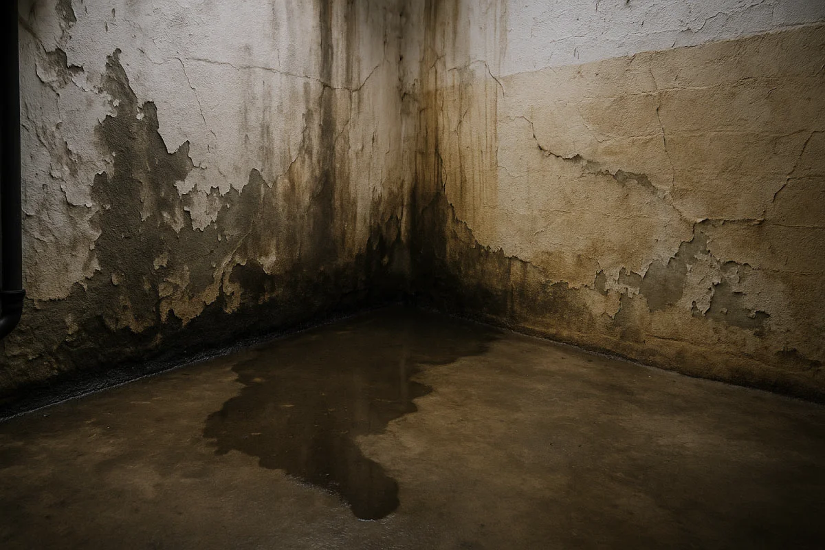 alt="Sótano con filtraciones">